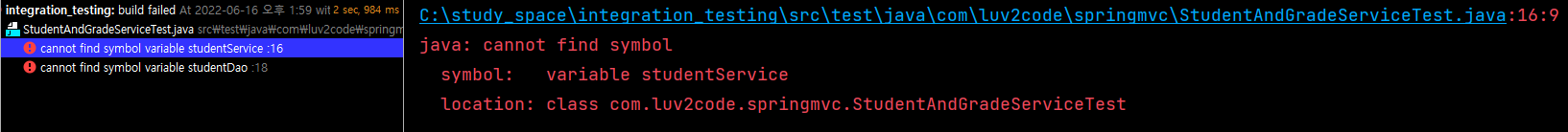 실패하는 테스트를 작성했으면 이젠 테스트에 필요한 StudentAndGradeService 클래스를 만들 차례이다.