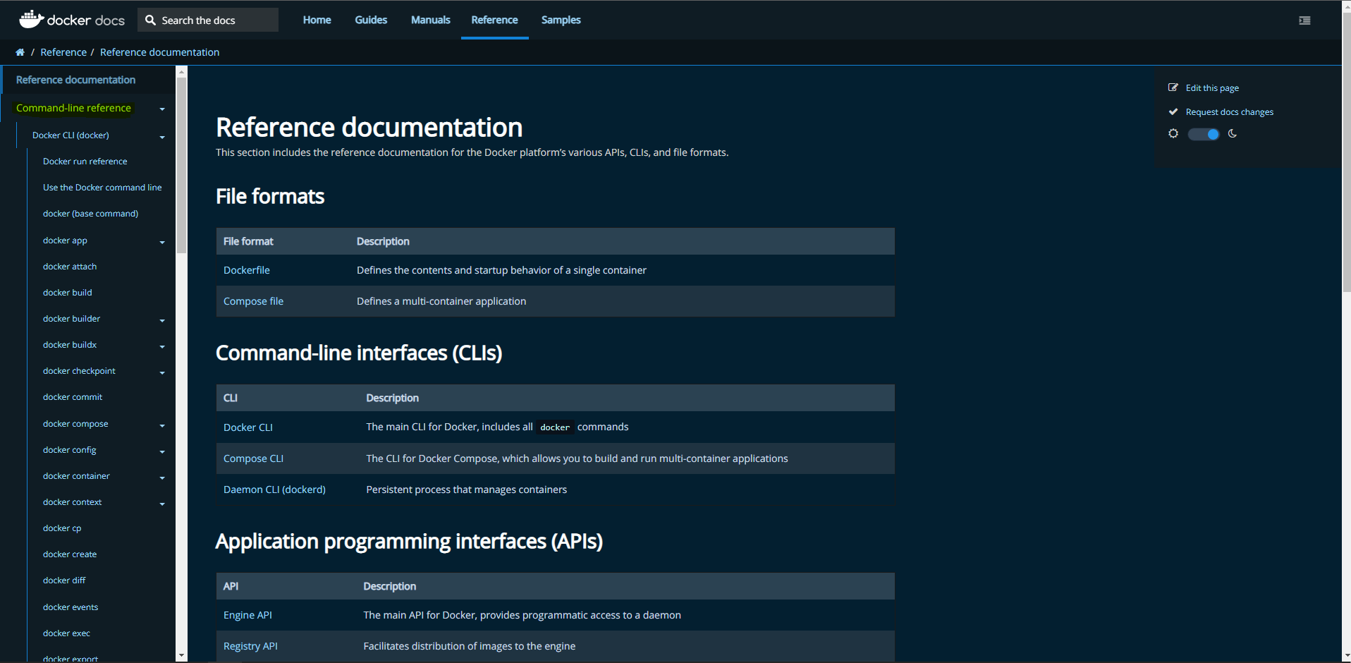 도커 명령줄 인터페이스에서 사용하는 명령어들은 레퍼런스 사이트에 자세히 적혀있다!!
