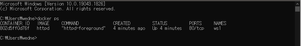 그리고 우리가 만든 컨테이너를 보고싶다면, ps 라는 명령어를 입력해주면 된다!