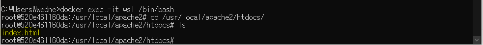 index.html 파일은 컨테이너의 /usr/local/apach2/htdocs 경로에 존재하는데